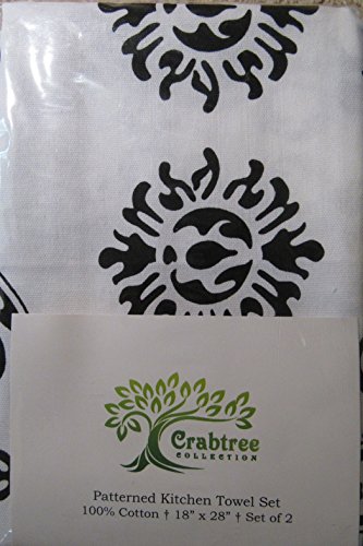 Classic Black Damask Kitchen Dish Towels - Crabtree Collection (Set of 2)