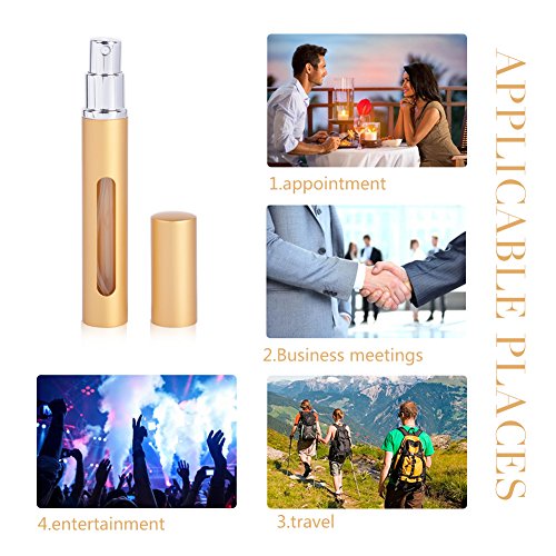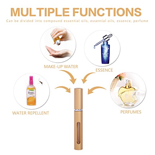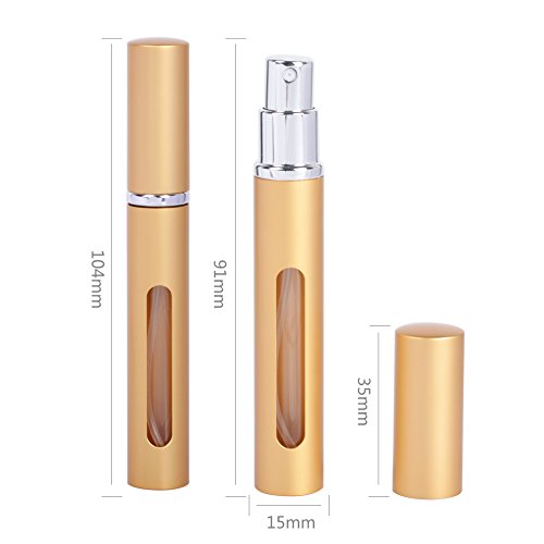 Empty Bottles: Made of glass inner bottle and aluminum outer shell, good protection for you perfume, not easy broken. Each bottle could fill 5ml of perfume, only 17g/pc, lightweight and small. You can take it in your purse, pocket or backpack to travel anywhere.