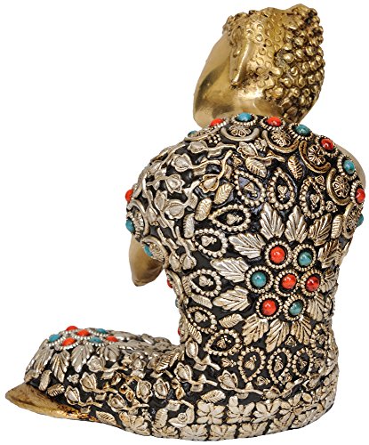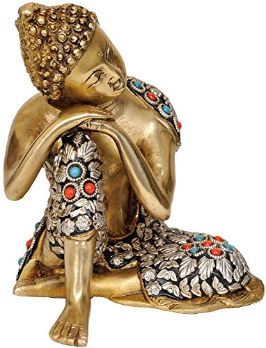 Thinking Buddha - Brass Statue with Inlay
