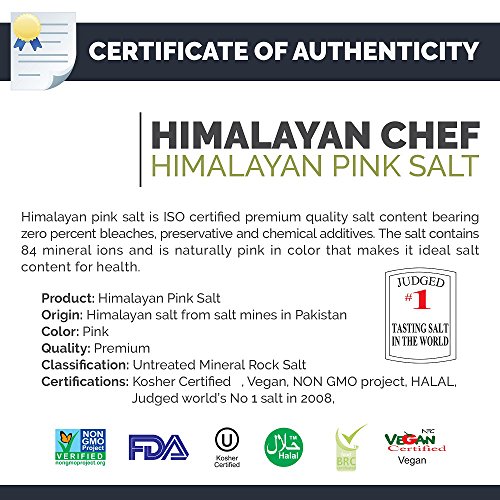 - NO CHEMICALS: Himalayan Chef's Pink Salt is free of bleaches, preservatives, or chemical additives and is packed with 84 minerals and trace elements providing a multitude of health benefits.
