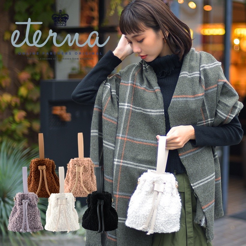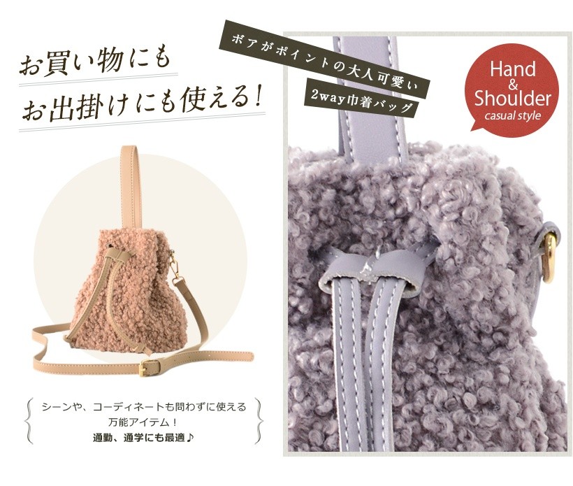 シンプルな巾着フォルムに、ボリュームのあるボアが女性らしさを引き立ててくれます。