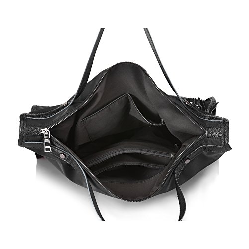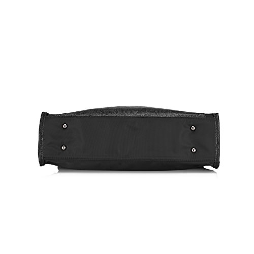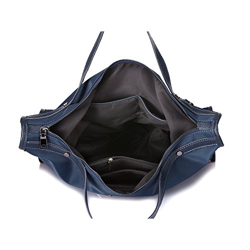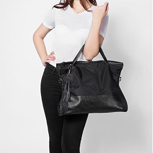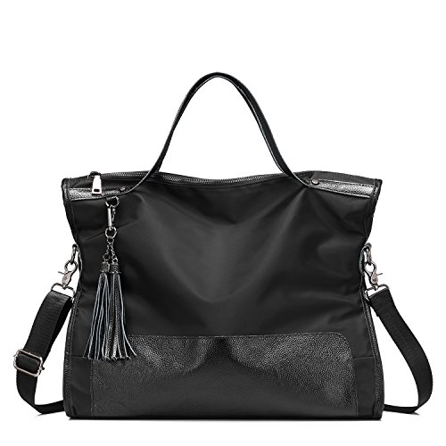 -. Feature : ★ COMBINED MATERIAL - Perfect combination of nubuck split leather & synthetic leather,feels supple to touch / ★ WELL CRAFTMANSHIP - Gold -toned zippers .Leather handles with careful and fine stitching / ★ TWO CARRYING WAY - You can use it as a fashion business portable handbag or a casual shoulder bag.Can hold all your necessaries when hanging out,such as books,Kindle,make-ups,lipsticks,perfume and some other items / ★ LARGE CAPACITY - Top with zipper closure and bottom with metal protective feet.The inside has 1 main compartments,2 zippered pockets,2 slot pockets.Back with a zipper pocket / ★ DIMENSION - Handbag Size:16.9"x10.8"x5.7"(W X H X D) Handle Height:4.9" Shoulder Strap Length:43.7"