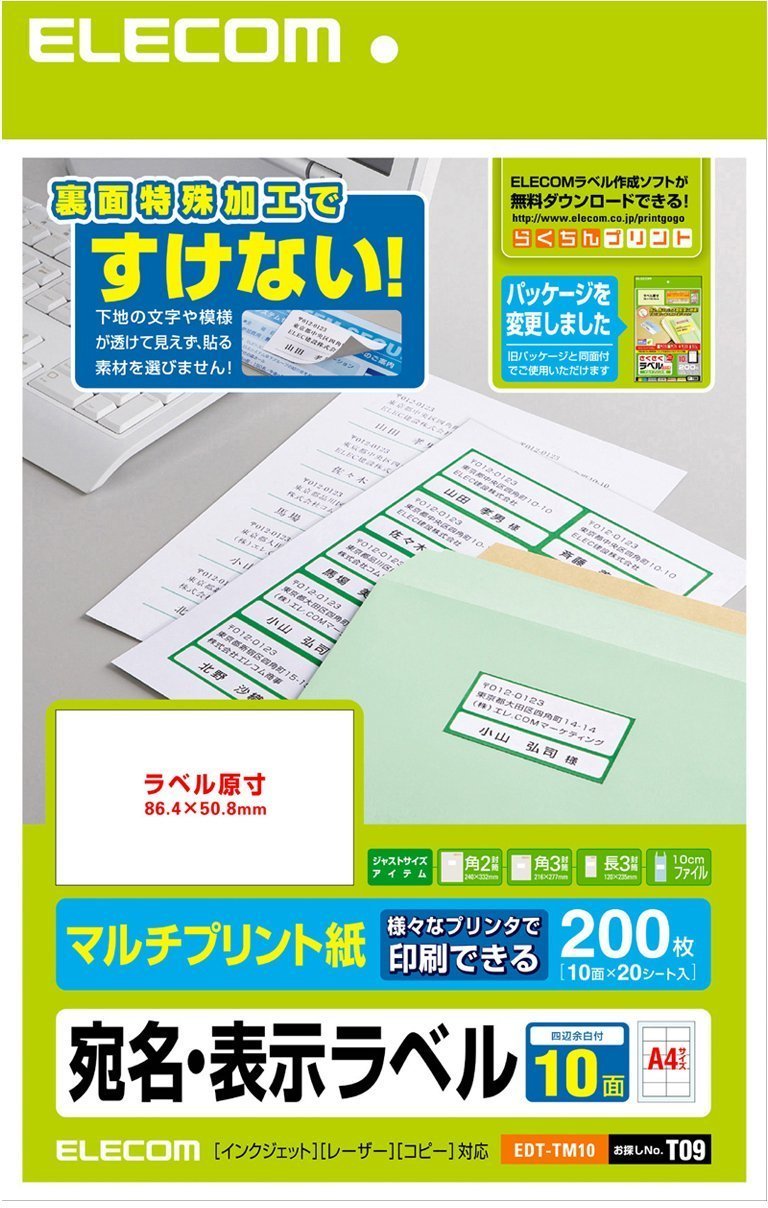 ELECOM mailing label seal A4 size 10 face 20 sheet EDT-TM10
