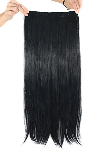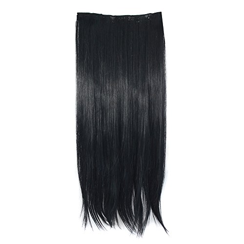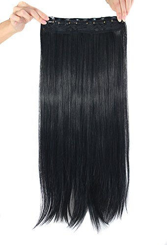 MapofBeauty 24" Long Straight Clip in Hair Extensions Hairpieces (Black)