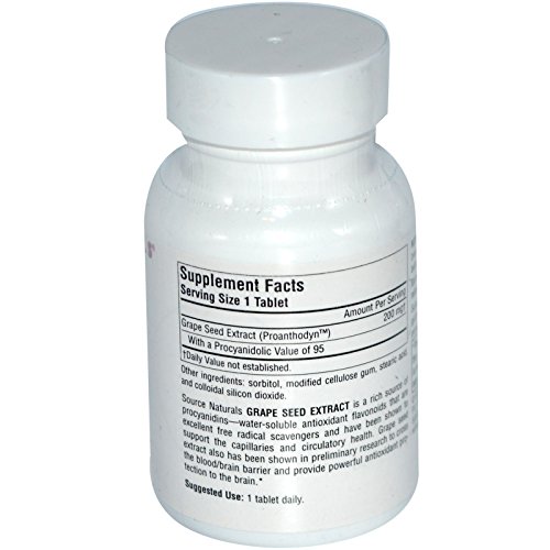 (Source Naturals)/Vitamins Dietary Supplements/Herbal Supplements/DIRECT FROM USA/SOURCE NATURALS Grape Seed Extract Proanthodyn 200 Mg Tablet, 60 Count