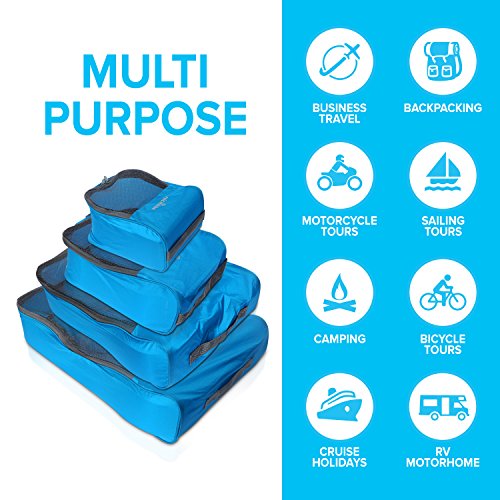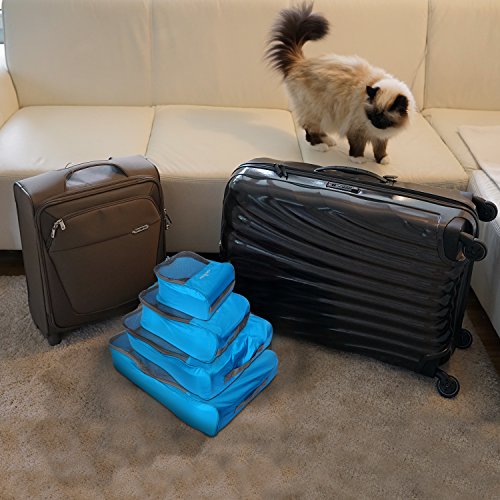 Packing organizers help you organize your suitcase like you would order your clothes in your closet. You'll never ever have to rummage around in your luggage again to find your stuff. Your clothes are now sorted by different size cubes, like drawers. Just take them out and place them in your hotel room, unzip them and they are ready to use. Sharing your packing space with family? Everybody gets their own color. You'll wonder how you ever lived without these!