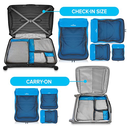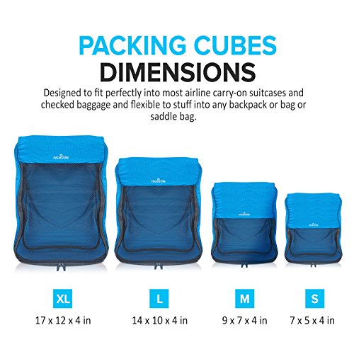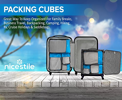 Nicestile Packing Organizers are sized to fit perfectly in your carry-on or check-in luggage. We took the typical size of a carry-on and created packing cubes (size S, M and L) that perfectly fit into the space, stacking together so every inch of your suitcase is used efficiently. Double up the layers to utilize every cubic inch of your luggage. If you pack for the bigger check-in luggage, add the size XL to cover the extra space efficiently.