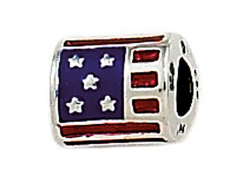 -. Title : Zable Sterling Silver USA Enamel Flag Bead / Charm
