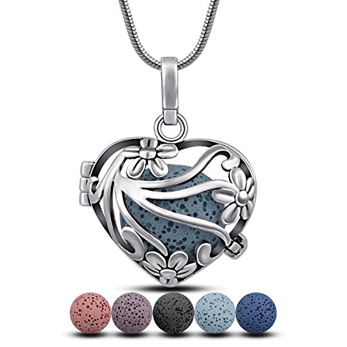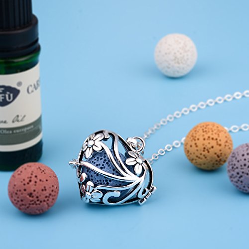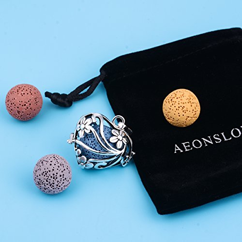 AEONSLOVE Women Fashion Flower Pendant with Lava Stone Aromatherapy Essential Oil Diffuser 24'' Necklace