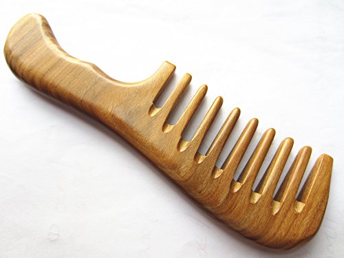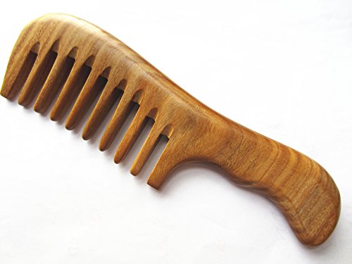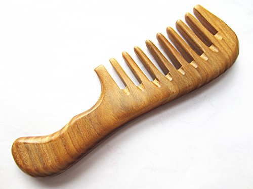 Myhsmooth Gs-2w-wt Handmade Natural Green Sandalwood No Static Comb with Aromatic Scent for Detangling Curly Hair and Gift -Made of a Whole...