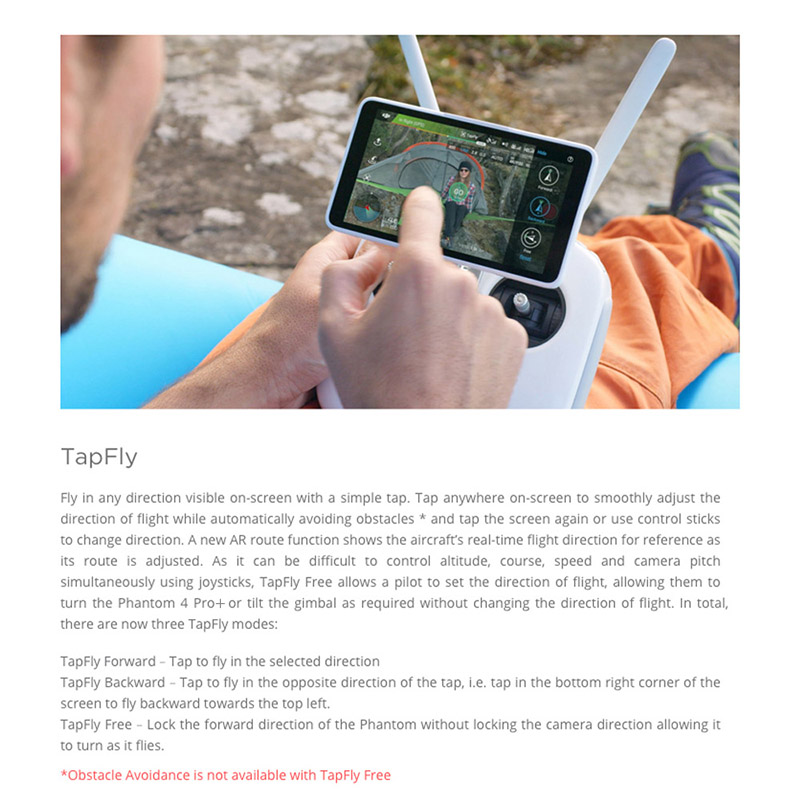 Three TapFly modes, TapFly forward; TapFly backward; TapFly free