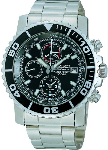 -. Title : Seiko Chronograph Black Dial Stainless Steel Mens Watch SNA225