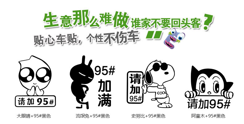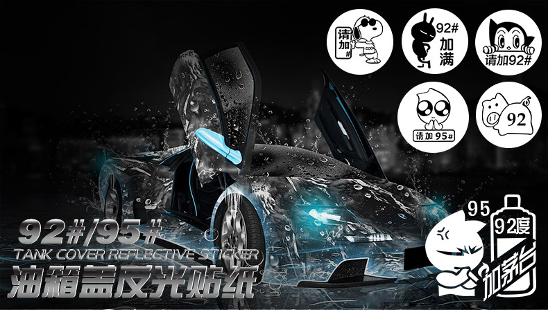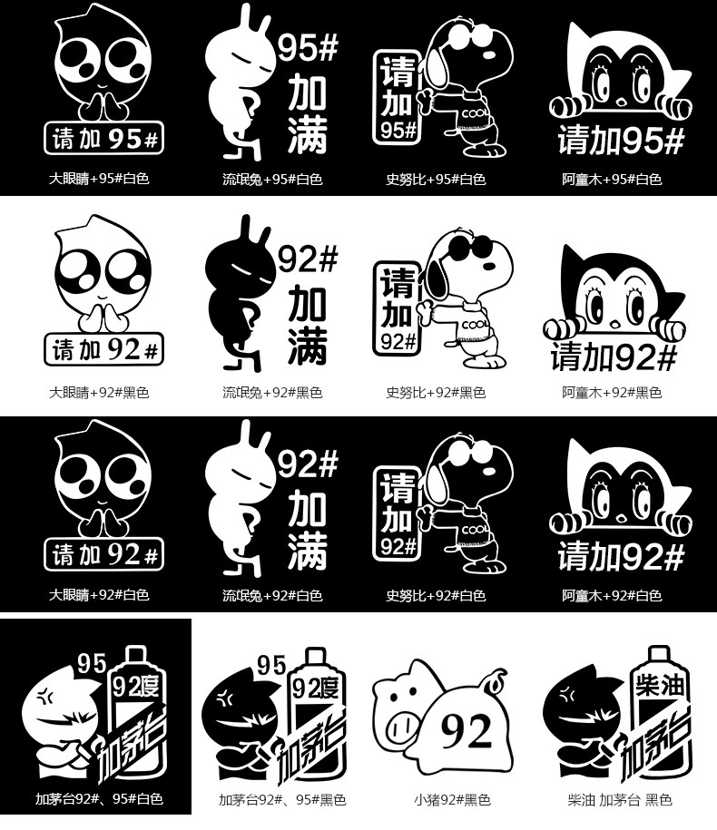 92 93油箱盖汽车贴纸可爱搞笑个性卡通反光95 97加油油型提示
