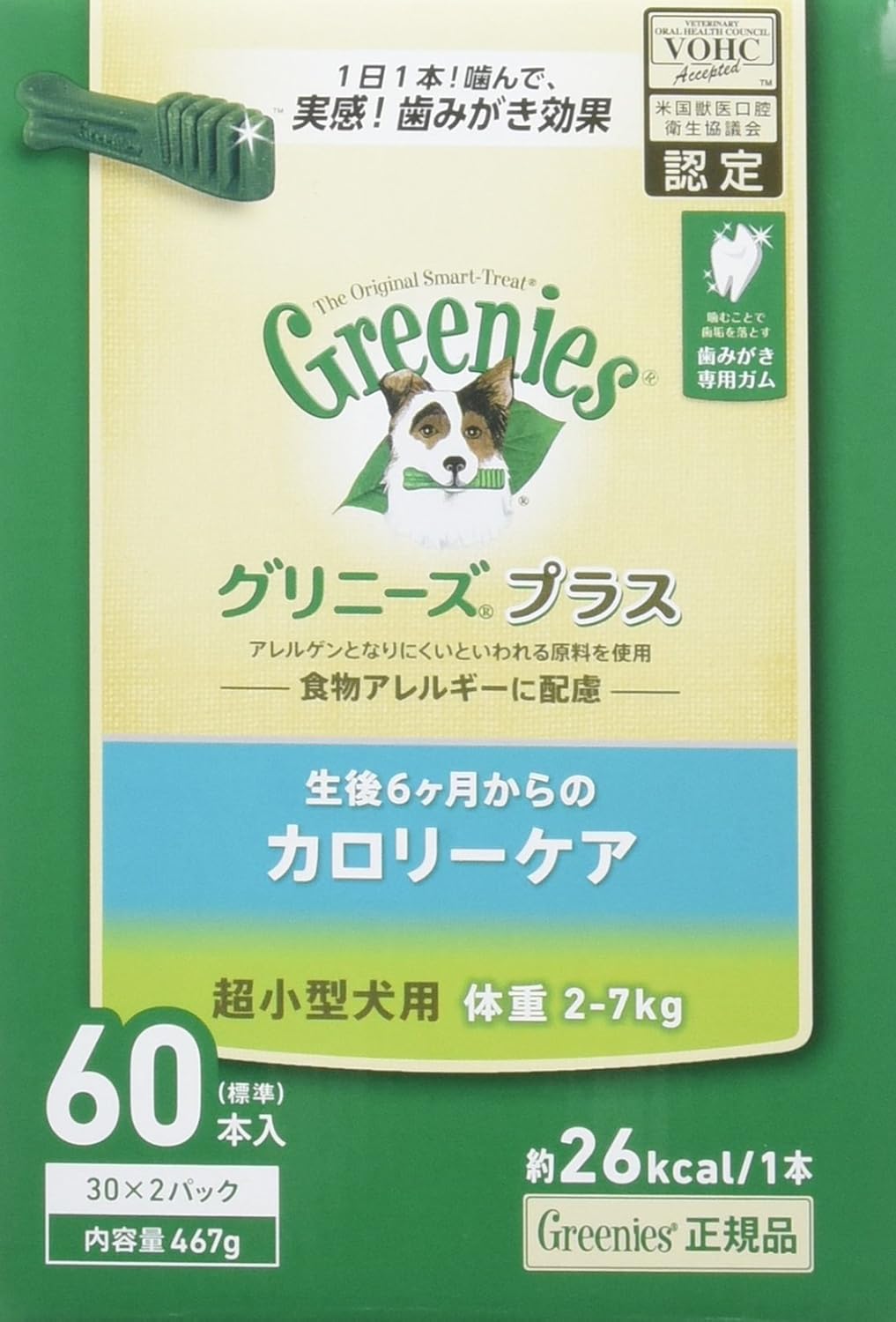 「グリーニーズ プラス カロリーケア」は、日本の愛犬のために設計された、噛むことで歯垢を落とす歯みがき専用ガムです。