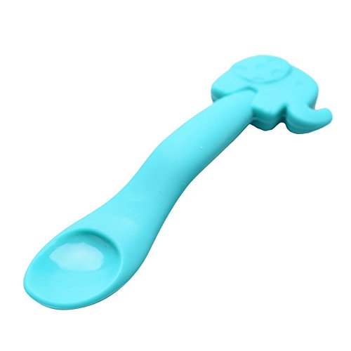 Fibevon Cute Baby Soft Silicone Spoons BPA Free Set, Elephant, Blue