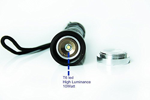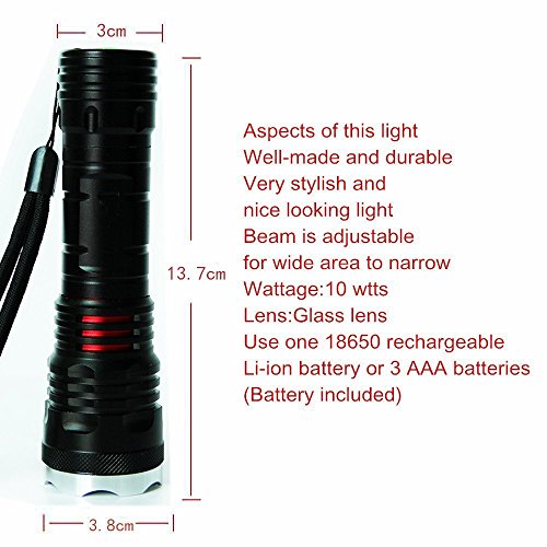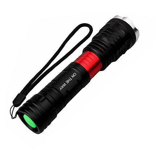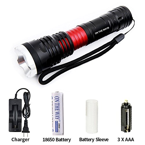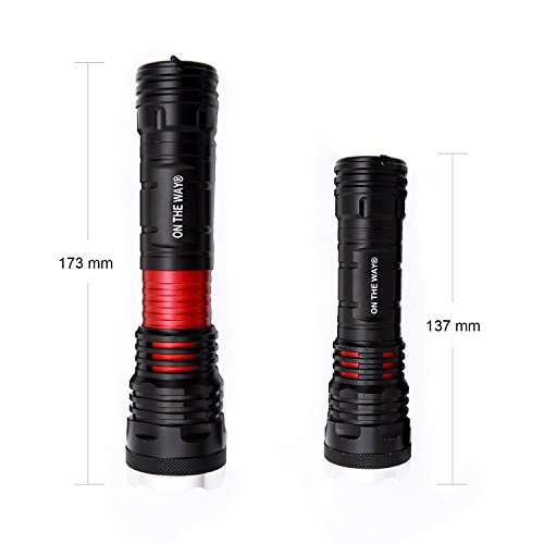 ON THE WAY®H6 1800 Lumens XML T6 Water Resistant Camping Lamp Torch Adjustable Focus Zoom Tactical Light Lamp for Outdoor Sports LED Flashlight Torch with 18650 Rechargeable Battery and AC Charger (Red)