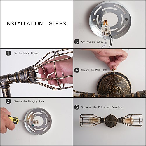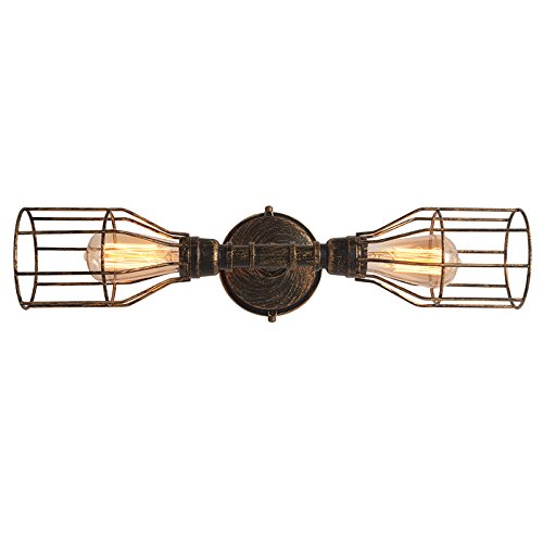 - Fancy Industrial Style - a retro vintage wall lamp lights shade Edison metal style with iron cages 2 lights wall sconce indoor wall fixture cast enough light for bathrooms, living room, kitchens and dining rooms