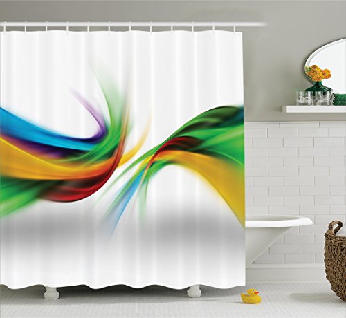 Ambesonne Abstract Home Decor Collection, Abstract Rainbow Geometric Shapes Blur Flooding Liquid Lights Rays Design, Polyester Fabric Bathroom Shower Curtain, 84 Inches Extra Long, Green Mustard Blue