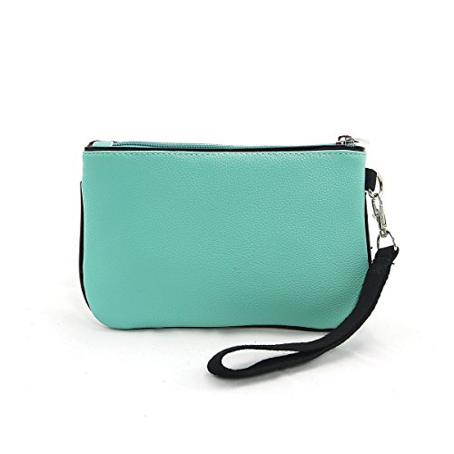 -. Feature : Measures Approx: 7.5" (L) x 0.5" (W) x 4.5" (H) / Secure zipper closure / Detachable wristlet strap / Quality vinyl material and uniquely designed / Fabric lined interior