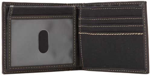 Rugged canvas. Leather reinforced spine, and pocket edges. Contrast stitching. Carhartt logo embroidered on interior pocket. Six credit card pockets. Two side pockets.