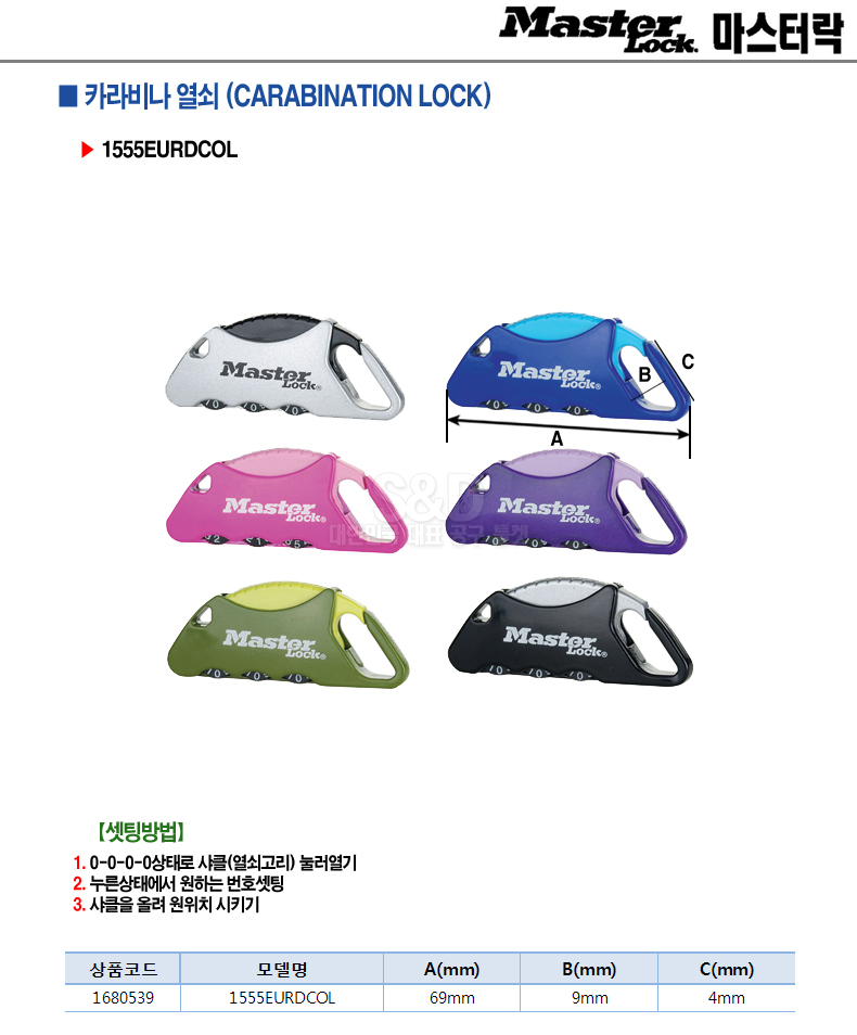 LOCK Carabinar Key 1555EURDCOL 69mm Security Lock MASTER