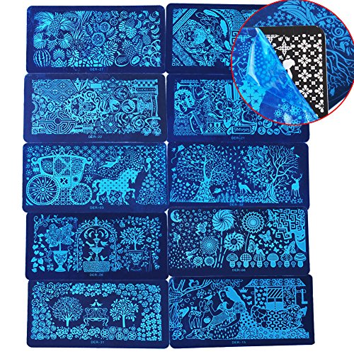 Title : Biutee 10 Nail Plates Nail Art Image Stamp Stamping Plates Manicure Template Flower Animal Nail Stamping Plates Nail Art Tools (Set A)