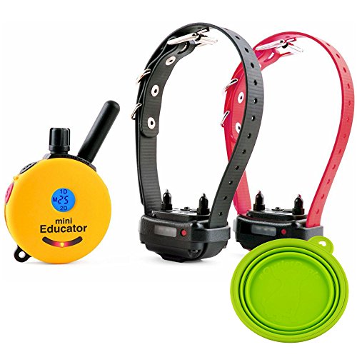 Studio : Educator Publisher : Educator Binding : Misc. Product Description Best Dog Training e Collar - Educator Einstein Remote Trainer - Mini Educator - 2 Dog 1/2 Mile Trainer ET-302 WaterProof - Vibration Tapping Sensation With eOutletDeals Collapsible Pet Travel Bowl. Description: The mini Educator ET-302TS is a 2 Dog half mile remote trainer loaded with unique features making it the most humane and effective trainer available. The ability to set the boost level from 1 to 60 levels allows the user to tailor the boost stimulation to your dog's temperament. Smaller dogs typically need 1 to 20 while bigger more stubborn dogs require the 20 to 60 boost range. The "lock and set" greatly reduces the chances of over stimulation by allowing the user to lock in a desired stimulation level. The smaller transmitter is especially well-suited for smaller hands or in situations where discreetness is important. But, don't be fooled by the small receiver size 2"X1.5"X1" 2.4 ounce, it provides plenty of stimulation for most dogs. Lost transmitter beeper can be turned on to help locate a misplaced or lost transmitter. The transmitter even floats so don't worry if you drop in the lake. Educator Remote E-Collar will turn a smart stubborn dog into a genius. 100% Satisfaction Guaranteed. Proudly Assembled in the USA. The eOutletDeals Collapsible Dog Bowls Are High Quality Durable. Non-toxic safe for your pets. Perfect For Food and Water.Really a very useful thing to have around. Color May Vary. Contents ** Two Waterproof Miniature Collar Receivers. ** One Waterproof Miniature Floating Remote. ** Free eeOutletDeals Collapsible Pet Travel Bowl. ** Two 3/4" x 30: Biothane Collar (Ready to Be Cut to Size). ** Four Sets of Contact Points (5/8" and 3/4"). ** Contact Point Removal Tool. ** Dual Battery Charger (120V/220V). ** Owner's Manual with Training Tips. ** Lanyard for the Remote. ** Color Storage Box. 0