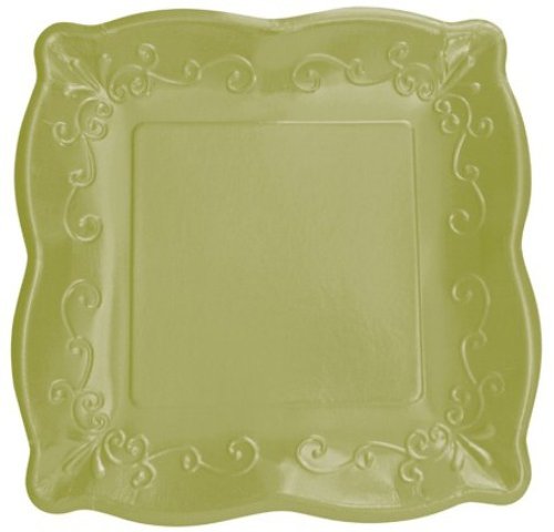 8-Count Elise Scalloped Embossed 7" Square Premium Paper Plates, Celadon