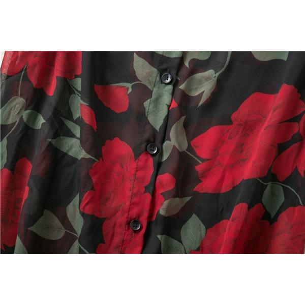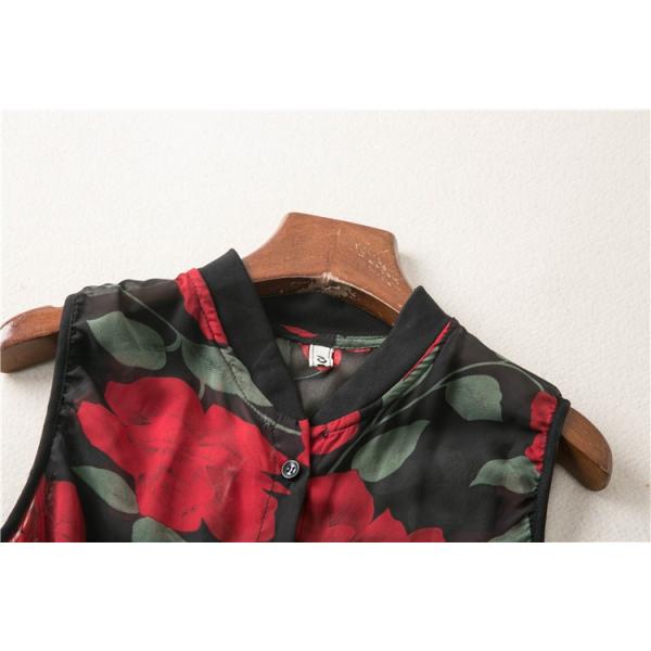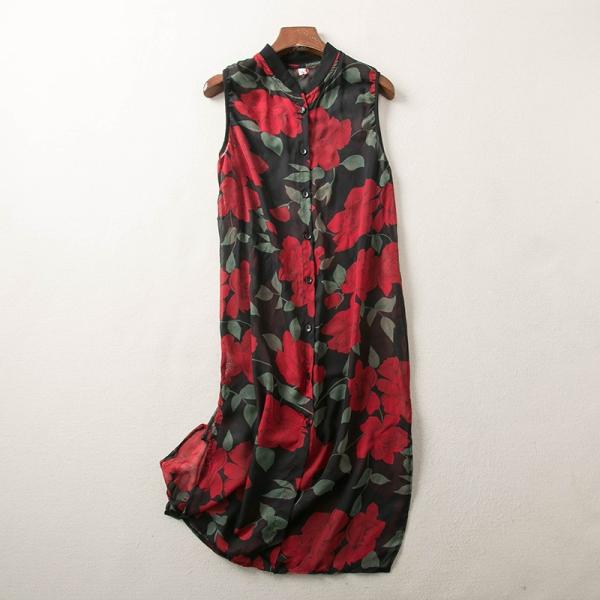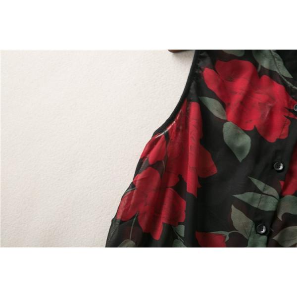 生地にバラをあしらったノースリーブの柄ワンピ―ス♪
