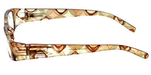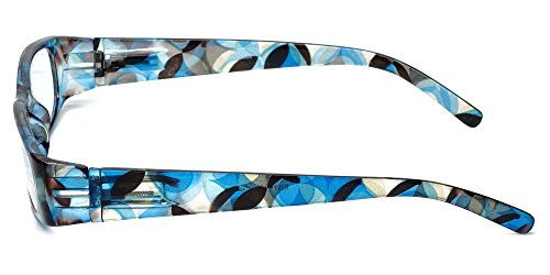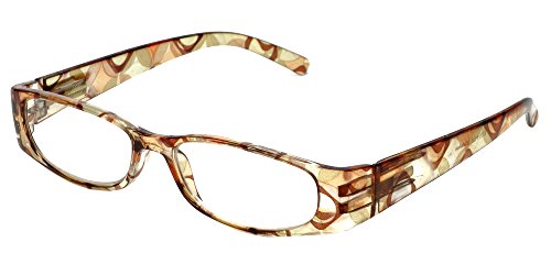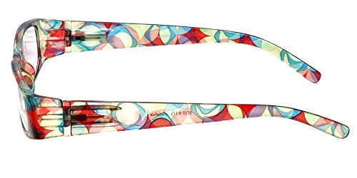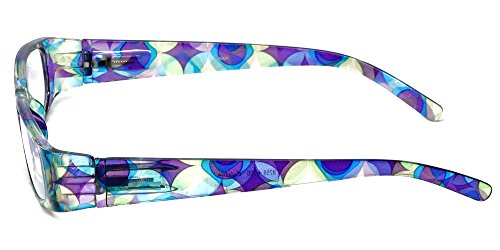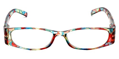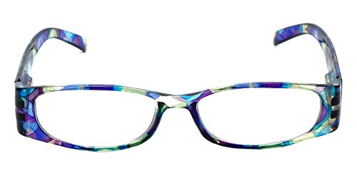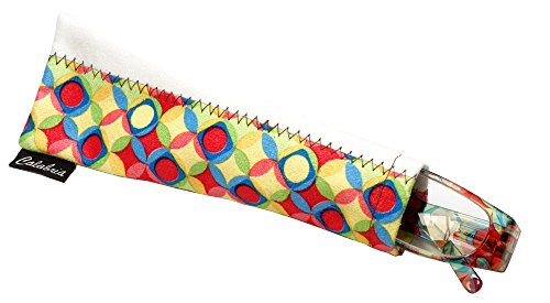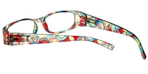Product Description Calabria® Eyewear's Model 759 is a stylish ladies reading glass featuring a striking translucent solid color front and a vivid Kaleidoscope pattern temple. The Temple pattern is both on the inside and outside of the temple. Expertly crafted lightweight polycarbonate frame with spring loaded temple hinges for the ultimate in comfort and durability. The optically correct, distortion free aspheric lenses provide outstanding clarity. These wonderful reading glasses features a matching protective case, that doubles as a cleaning cloth. The unique European style designed for the vibrant, fashion forward woman who wishes to make a statement without spending a fortune. Get the look of a Designer Eyeglass frame in an inexpensive reading glass. There are 4 different color options. 0