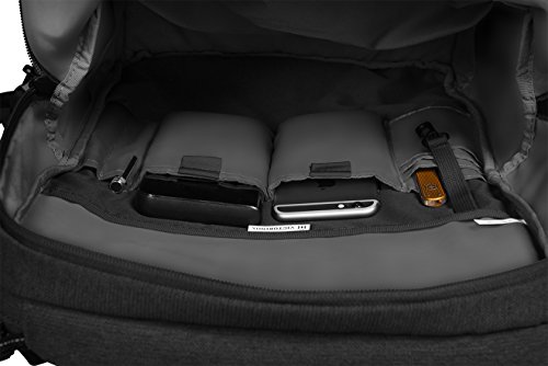 -. Feature : Padded, rear, side-entry compartment protects up to a 15" laptop and features a lockable zipper / Interior organization includes a file divider, two padded storage slots ideal for peripherals, two pen slots, card slots and a key fob / Exterior features a vertical-zip side pocket containing a bottle opener, a vertical-zip side pocket containing a storage slot and elastic pen/USB loops and two vertical-zip front storage pockets / Adjustable padded, Airmesh shoulder straps and padded back panel for comfort / 5.9x18.9x11.8
