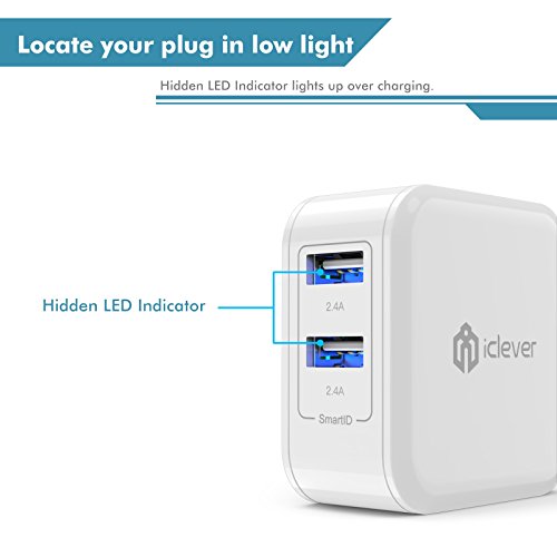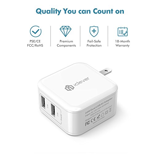 [Upgraded] iClever BoostCube 24W Dual USB Wall Charger with Foldable Plug, SmartID Technology for iPhone 7 / 6S / Plus, iPad Air 2 / mini 3, Galaxy S7 / S6 / Edge, Note 5 & More