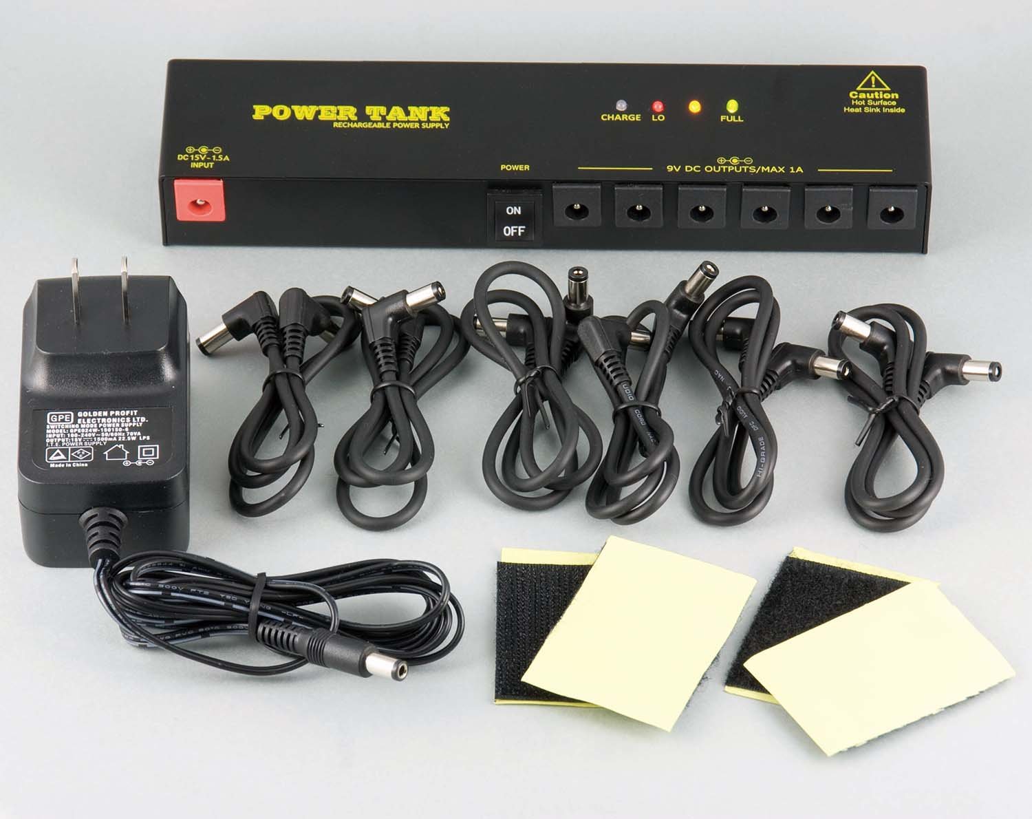 A rechargeable power supply, POWER TANK, is ideal for a 9 V effect pedal.