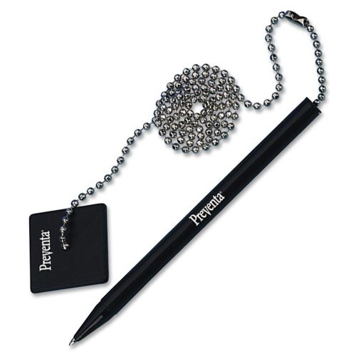 -. Feature : Countertop or security pen with square base that adheres to any flat surface / Includes 24" high-strength ball chain / Black barrel; includes built-in AgION antimicrobial technology / Ink is archival-safe, acid-free and water-resistant / Black ink