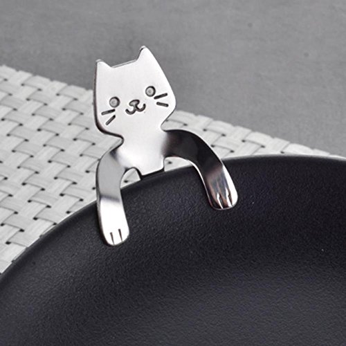 Cha Long 3 Pcs Stainless Steel Spoon Mini Cat, Tea Soup Coffee Sugar Dessert Appetizer Seasoning Bistro Spoon, Hanging Cup Spoon Kitchen Gadget ? Feature - Cute cat style coffee spoon. Easily matches with existing flatware.