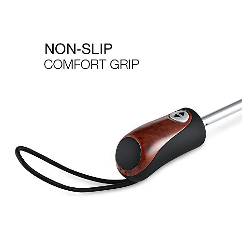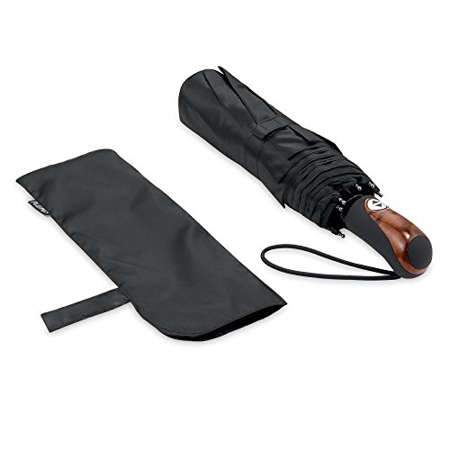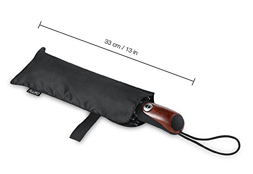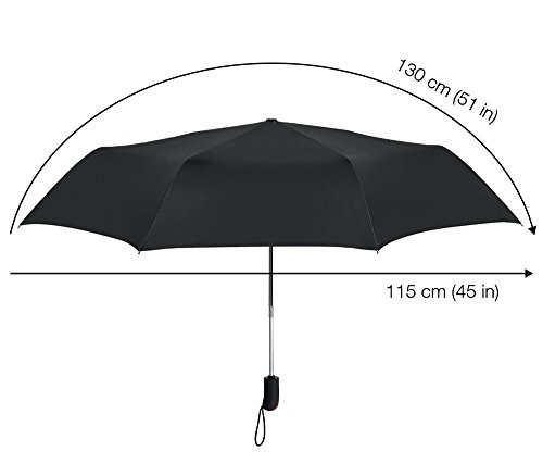 -. Feature : Featuring 8 virtually unbreakable steel ribs constructed from durable aluminum, this high-quality umbrella is capable of withstanding strong winds without bending, breaking, or inverting / Convenience and safety come together with an easy one-touch button release to open and close your umbrella, plus a specially designed telescopic rod prevents bounce back when it`s not fully folded up / Made from amazingly durable, high-density, water-repellent satin fabric, the canopy sheds water droplets effortlessly, thereby keeping you dry / Measuring a purse-sized 13 in (33 cm) long when folded, this tiny but tough umbrella opens to a generous length of 27.2 in (69 cm) and a sprawling diameter of 45.3 in (115 cm) so it's big enough to shelter two adults from the rain / Available in classic black and includes a matching storage sleeve with an easy-close clasp - accessorizing in inclement weather has never been easier