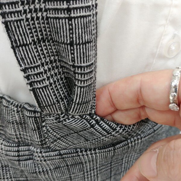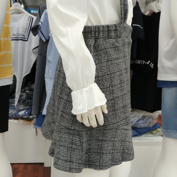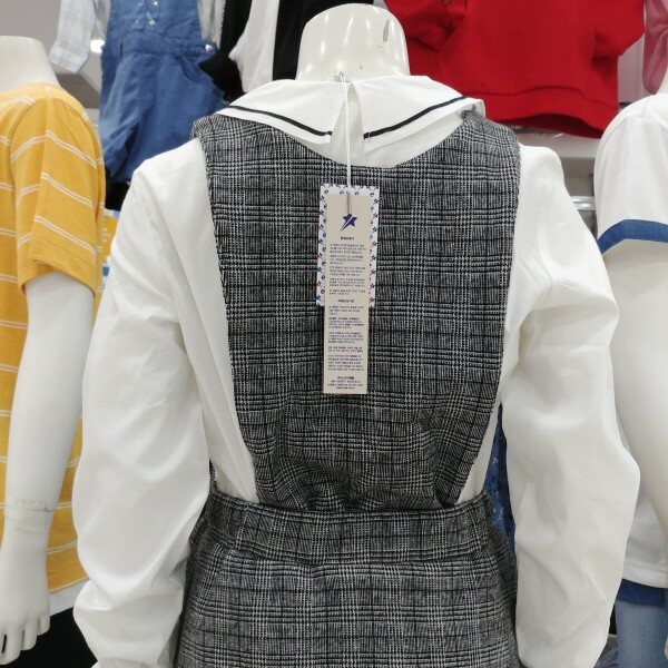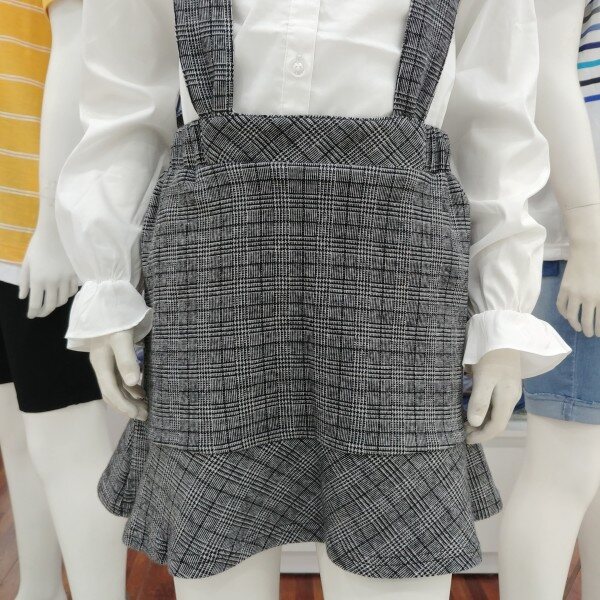 블랙과그레이의 체크 무늬가 포인트입니다.블라우스나 기본 면티에도 썩 잘 어울리는 가을 겨울 봄까지 입을 수 있는 디자인입니다.멜빵은 조절 되지 않는 일체형입니다.신장 사이즈에 맞추시면 됩니다.