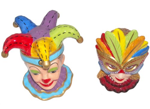 Clown and Girl Wearing a Mask Ceramic Salt and Pepper Shakers Set of 2