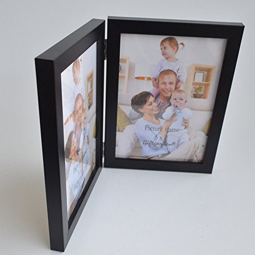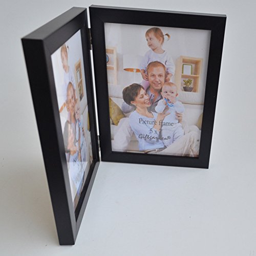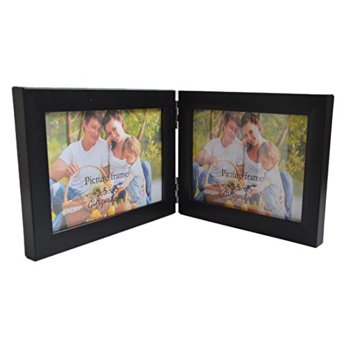 -. Feature : Our frames are made of wood composite material, it may be look like plastic but not plastic, PVC front(no glass) wooden photo frame. makes the frame safer to use. Also safe for kids, great for art projects. Holds two 5x7 size photos. There are double side recycle symbols layer of protective film on the surface of the PVC lens. which protect frame surface from destroying during shipping, it should be torn off manually before use. / Hinges connected twins bed frames for pictures, and can be used for your desk at work. / Classic elegance picture frame molding allowing you to display two related photos together. / Capture those special moments and do some silhouettes to put into this cool picture frames. / Standard picture frame ideas gift for grandparent or put wedding pictures in as a Christmas present