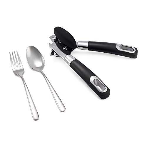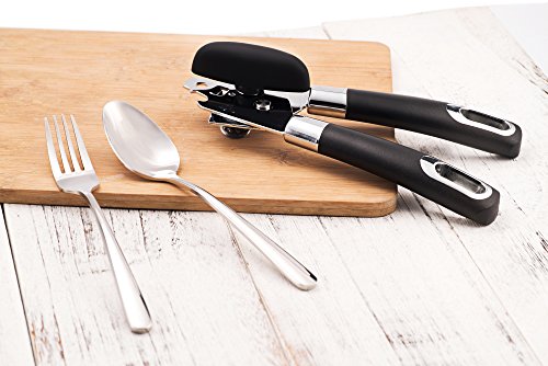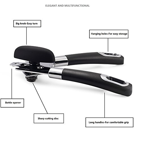 Comfortable, easy grip ergonomic handles fit any size hands. Hold and operate the can opener with comfort and ease!opener has an extra big and soft turning knob for easy and smooth maneuvering.