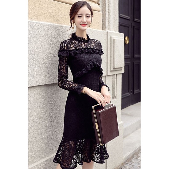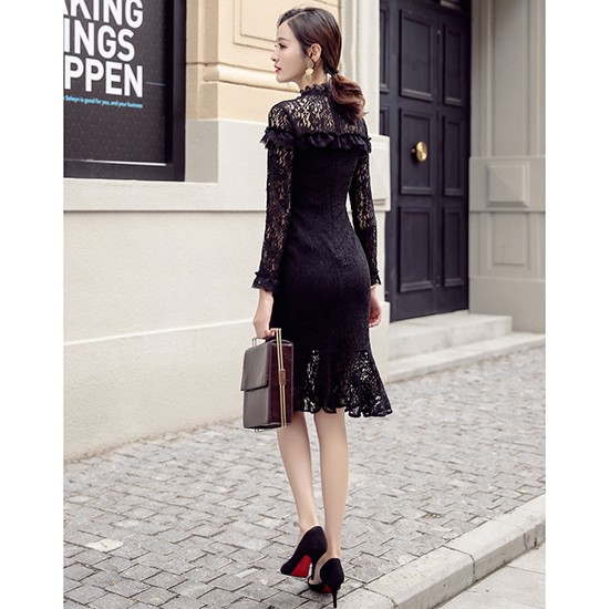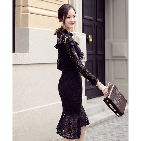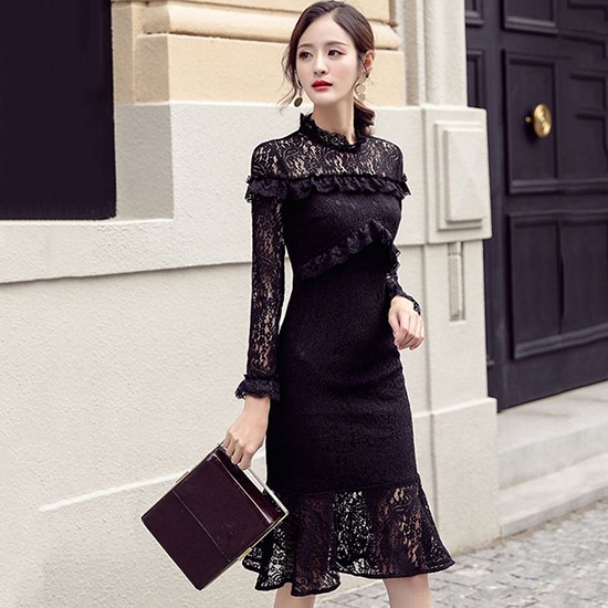 レースをあしらったタイトでセクシーなワンピース。