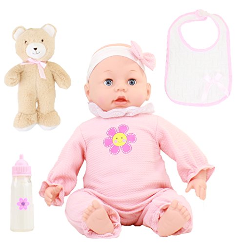 -. Title : 16'' Doll Soft & Hable with Teddy Bear Bib a Magic Milk Bottle