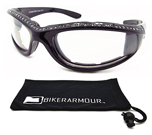 -. Title : Rhinestone Motorcycle Glasses Foam Padded for Women. Clear Lenses for Night Riding and Trendy Rhinestones Frames.