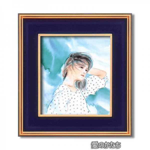 | 淡く抒情豊かな水彩画で優しく描かれた慶文の可愛らしい絵をセットにした色紙額。慶文が描いた淡い色紙絵を格調高い黒金の額にセットしました。 |