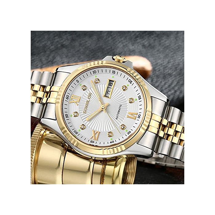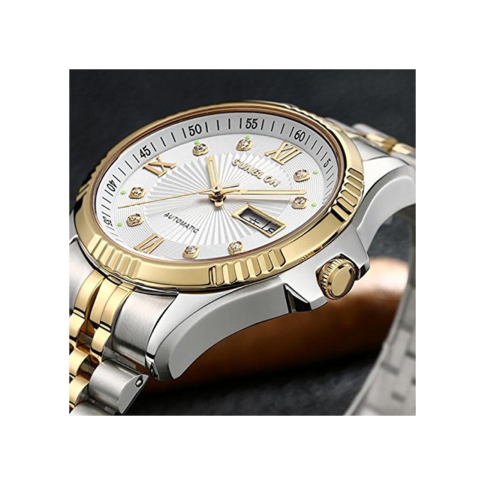 OKINO 고품질 SUNBLON 고급 브랜드 기계식 손목시계전 자동 감기식 야광 기능 로마숫자 아날로그모델 오토《마팃쿠》 워치 watch 스테인레스 찌《루》 밴드 멋쟁이 심플 패션