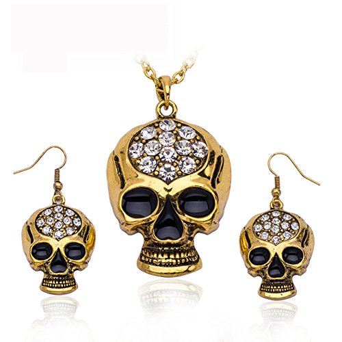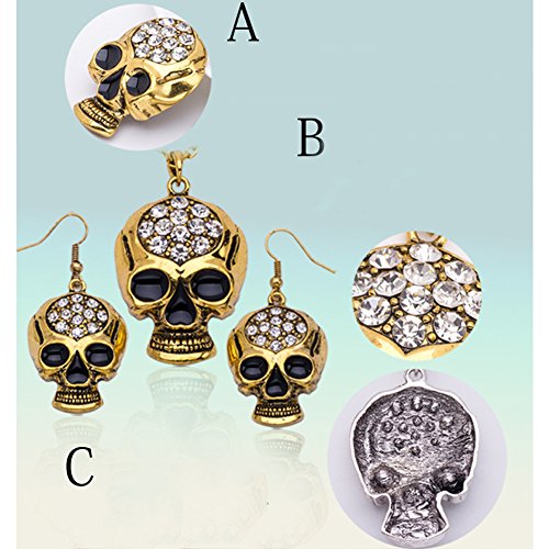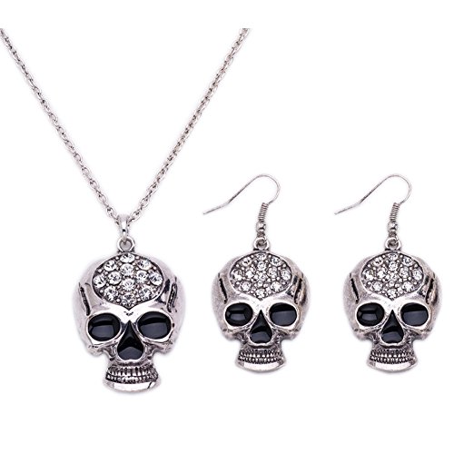 -. Title : Horror Halloween Punk Crystal Ghost Skeleton Skull Gothic Long Pendant Necklace Earrings Jewelry Sets for Women