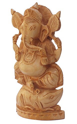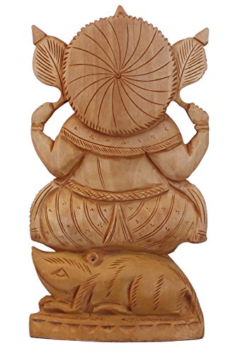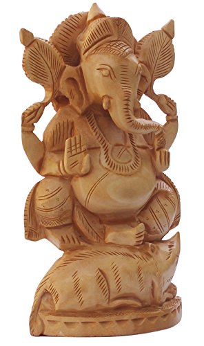 -. Title : SouvNear Lord Ganesh Statue on Mouse (Ganesha) Hindu Elephant / God of Success Statue -100% Handmade Wooden Sculpture-Good Luck Charm Figurine