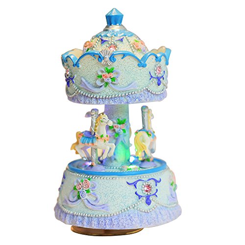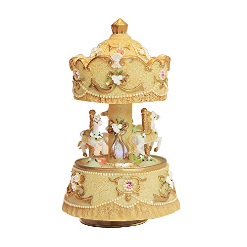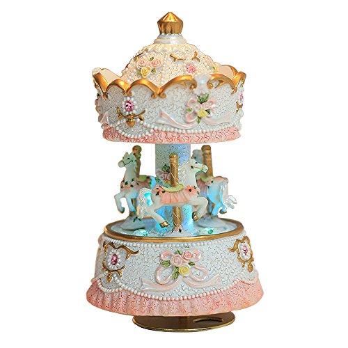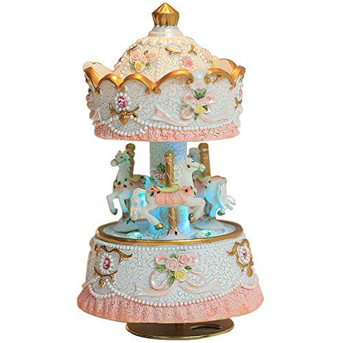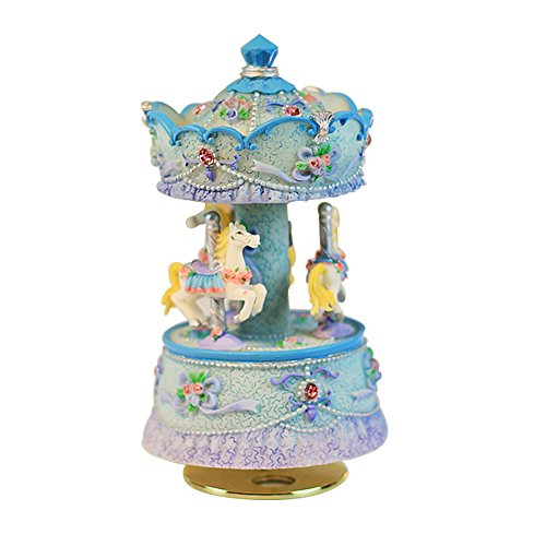 Synthetic resin music box. Romantic carousel music box. Beautiful design, good carving skill. Wind up to drive in the nice music.Futures:
