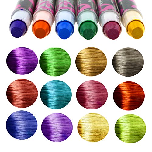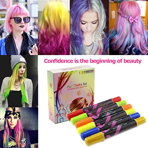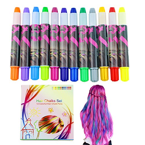 Philonext 12 Colorful Hair Chalks Set - Professional Hair Chalk Pens Non-Toxic Metallic Glitter Temporary Hair Colored for kids, No Mess, Works on All Hair Colors, For All Ages