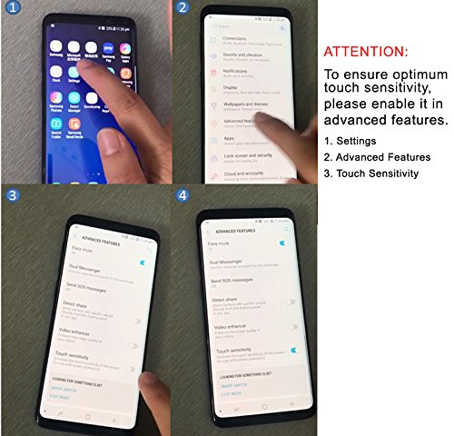 -. Binding : Wireless Phone Accessory -. Brand : Luvvitt -. Color : Black -. EAN : 0815649024054 -. Feature : Tempered glass screen protector compatible only with Samsung Galaxy S9 / CURVED FOR PERFECT FIT: Premium grade Japanese Asahi Tempered glass with 9H+ scratch resistant surface (almost as hard as a diamond with highest resistance at 10H) / CASE FRIENDLY / COMPATIBLE: Covers the entire screen while leaving a small tolerance around the perimeter to allow use with a phone case. / FLAWLESS: Rounded edges for flawless integration and smooth feel. High touch sensitivity. Oleophobic coating. / ATTENTION: To ensure optimum screen sensitivity, please ENABLE touch sensitivity under Advanced Features Settings of your S9 -. Label : Luvvitt -. Manufacturer : Luvvitt -. Model : LUVGS9TEMGLS -. MPN : LUVGS9TEMGLS -. OperatingSystem : Galaxy S9 Tempered Glass -. PackageQuantity : 1 -. PartNumber : LUVGS9TEMGLS -. ProductGroup : Wireless -. ProductTypeName : WIRELESS_ACCESSORY -. Publisher : Luvvitt -. Studio : Luvvitt -. Title : Luvvitt 3D Curved Tempered Glass Screen Protector for Galaxy S9 [Case Friendly] -. UPC : 815649024054